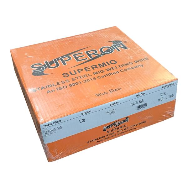 ลวดเชื่อมมิกสแตนเลส SUPERON SUPER MIG 310 (ER310) แกนลวดสแตนเลสที่มีส่วนผสมโครเมียม 25% นิเกิล 20% เหมาะสำหรับงานเชื่อมต่อชนชิ้นงานสเตนเลส ที่ใช้ในงานอุณหภูมิสูง เช่น โรงงานไฟฟ้าพลังงานนิวเคลียร์ ระบบท่อสตีมความร้อนสูง สามารถทนความร้อนได้สูงสุดถึง 1,100 องศาเซลเซียล และยังให้ค่าแรงดึงสูง 89,000 ปอนด์/ตารางนิ้ว