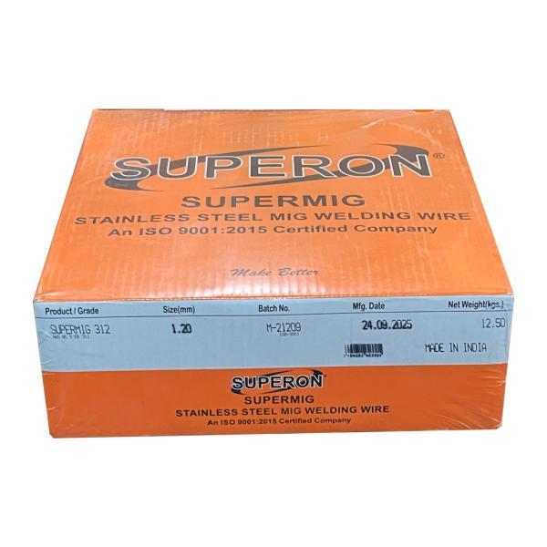 ลวดเชื่อมมิกแสตนเลส SUPERON SUPER MIG 312 (ER312) สำหรับงานเชื่อมที่ต่อชนหรือพอกผิวชิ้นงาน เนื้อโลหะเชื่อมมีความต้านทานการแตกร้าวดีเยี่ยม สามารถเชื่อมโลหะต่างชนิดหรือโลหะที่เชื่อมยากได้ โดยไม่เกิดการแตกร้าว สามารถทนแรงดึงสูงสุดได้ถึง 120,000 ปอน์ด/ตารางนิ้ว