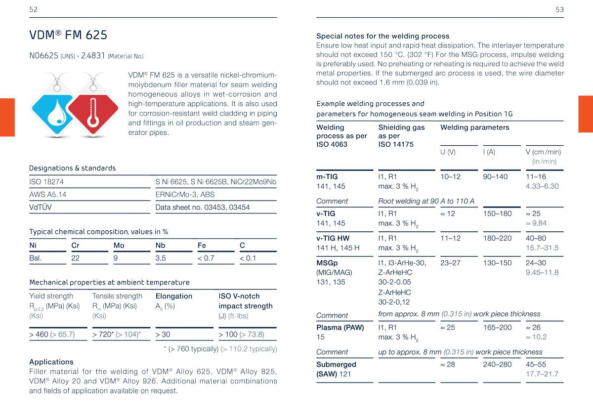 ลวดเชื่อมอาร์กอนนิเกิลอัลลอย VDM Metals FM 625 (ERNiCrMo-3) ลวดเชื่อม Inconel 625 เป็นลวดเชื่อมกลุ่มนิกเกิลอัลลอย ที่มีคุณสมบัติทนทานต่อการกัดกร่อนสูงมาก และยังสามารถทนต่อความร้อนได้เป็นอย่างดี เหมาะสมสำหรับงานเชื่อมโลหะผสม Inconel 625, Hastelloy C และวัสดึที่ต้องการความแข็งแรงสูง และยังสามารถทนต่อการกัดกร่อนในสภาวะรุนแรง